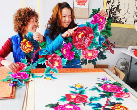 广灵剪纸剪纸是刀刻宣纸、品色点染而成的彩色剪纸,在中国三大剪纸流派中属华北流派,且是华北流派的点睛之作,除具有剪纸艺术共同的特性:写意性、象征性、意象化、创新性、时尚性之外,还具有其独特性: